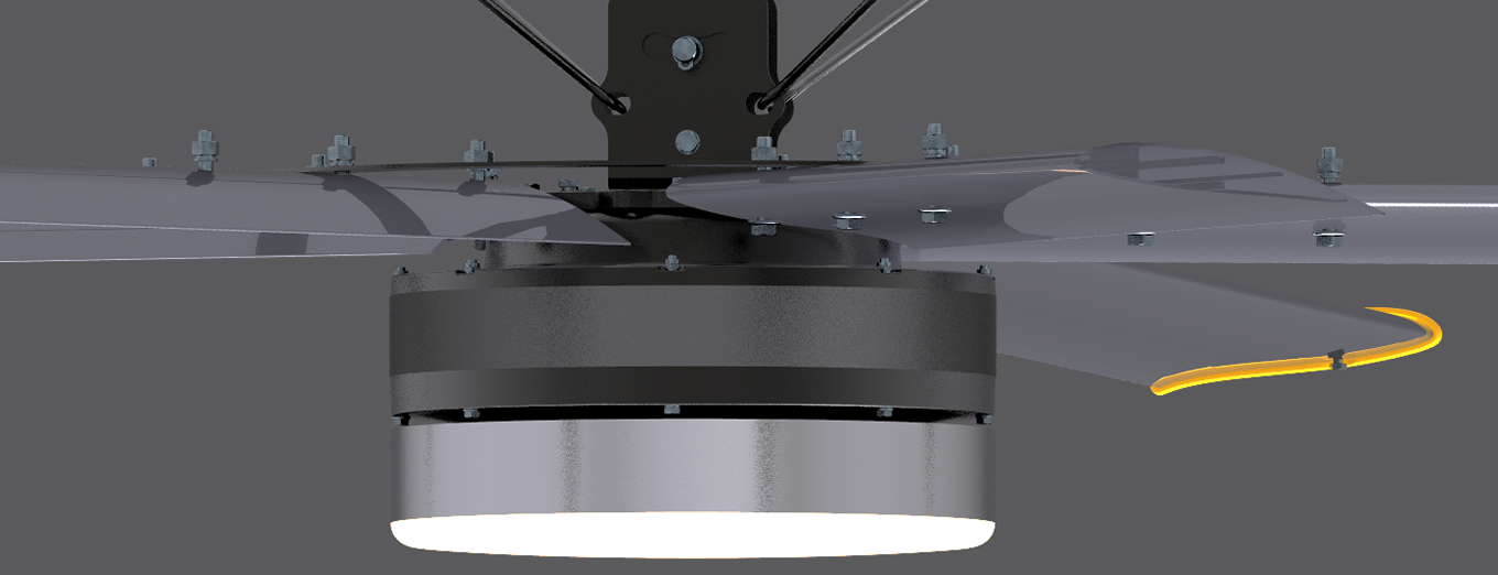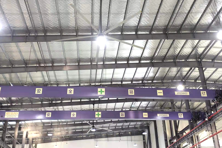 奧寶杰LED照明吊扇兼顧通風降溫照明不受影響的需求,將燈與風扇相結(jié)合,讓地面操作作業(yè)環(huán)境通透不被燈光干擾。